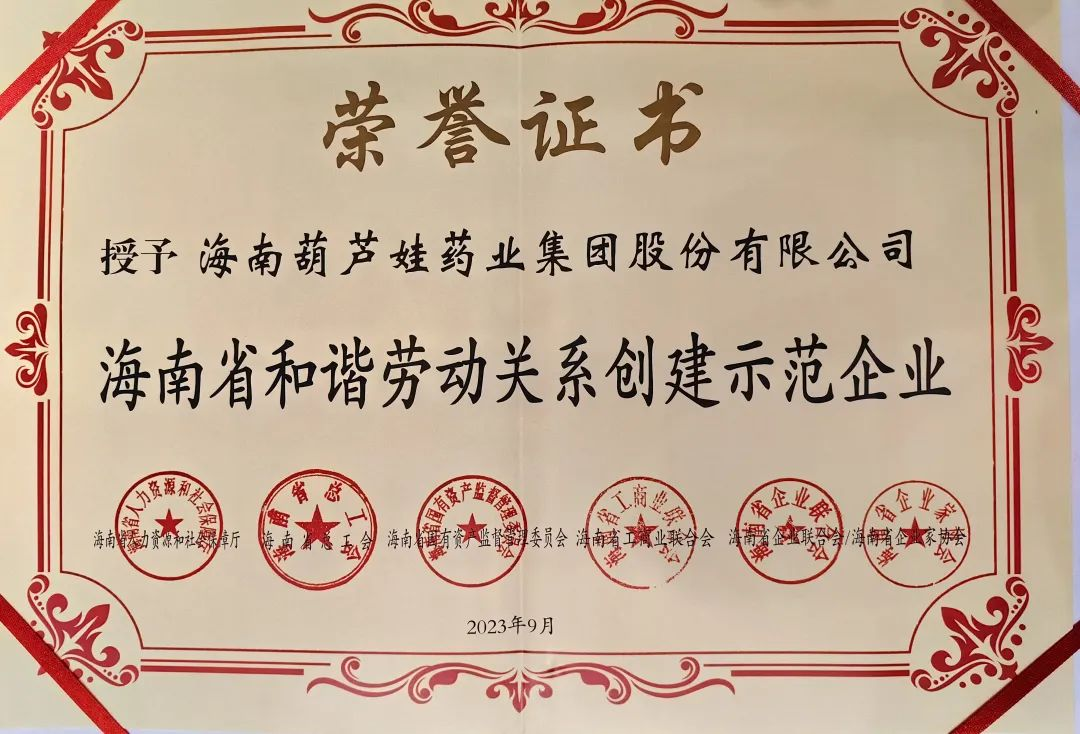 开云电竞药业集团获评“海南省和谐劳动关系创建示范企业”